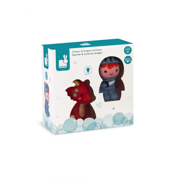 Your child will imagine wonderful stories in his bath with this knight and his luminous dragon. The dragon lights up when it touches the water, or by finger contact. It automatically turns off after 20 seconds.