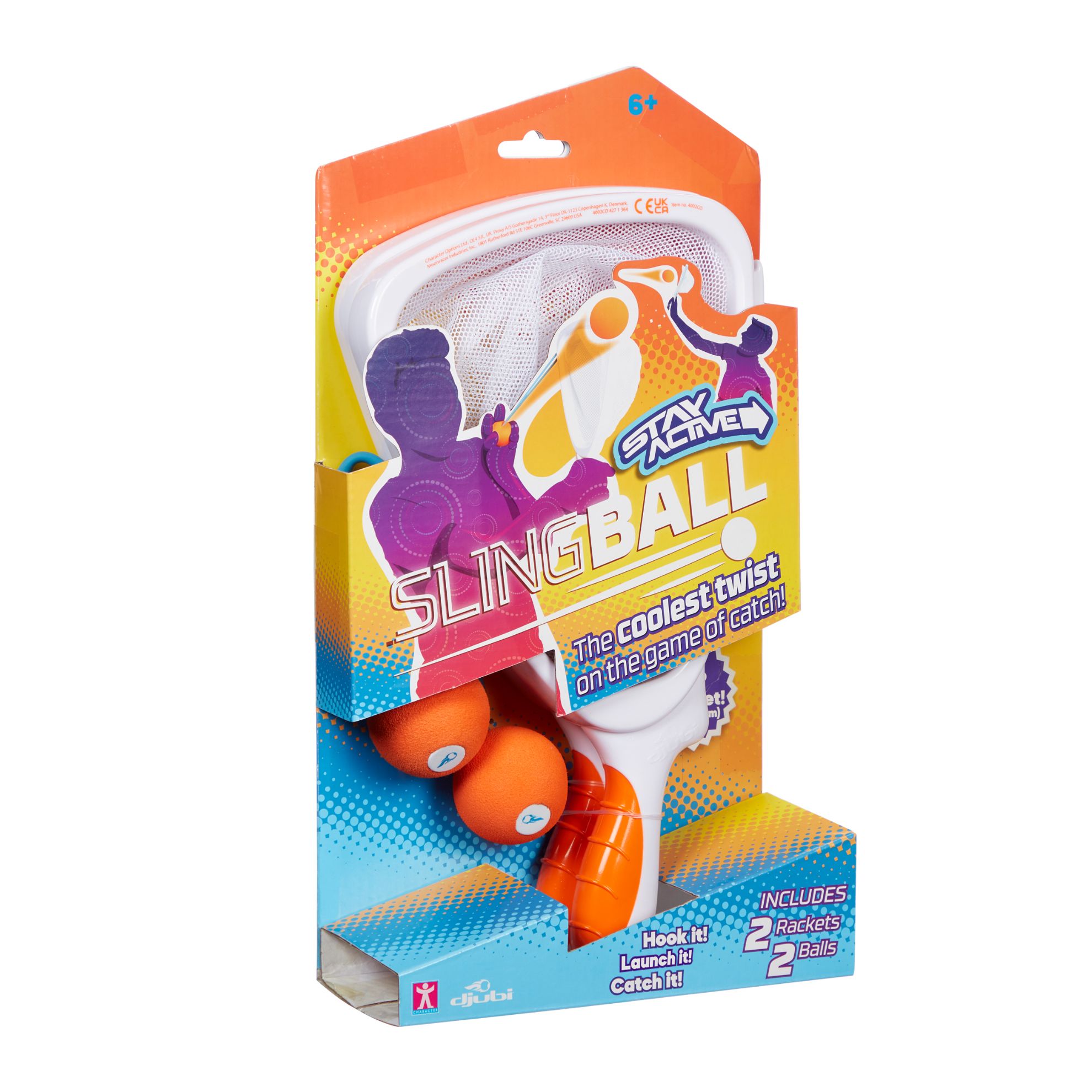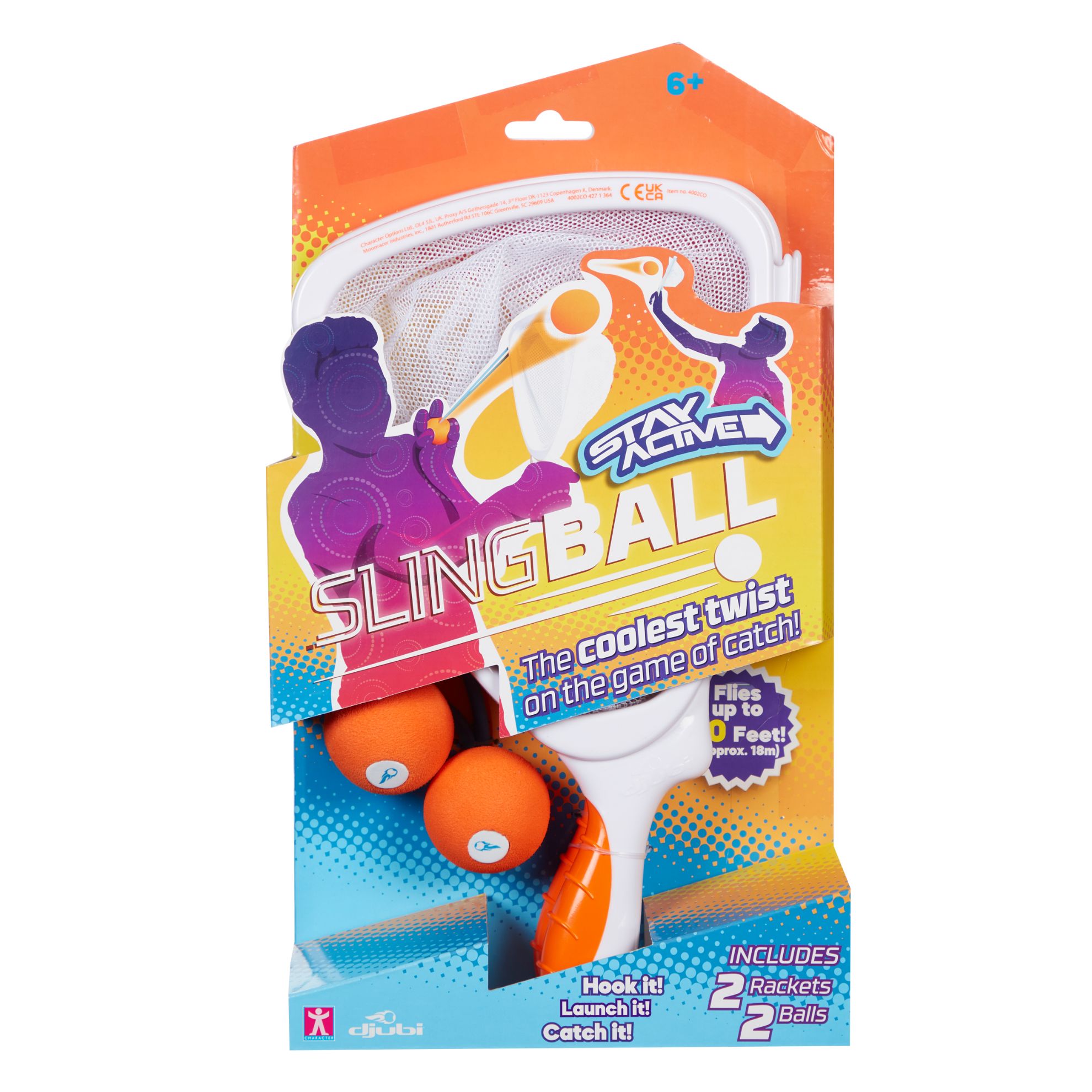 SlingBall is a high-flying game of catch like you’ve never seen before! Use the rubber loop to launch the ball through the air so your friends can catch it with their racquets. Includes 2 Sling Ball racquets and 2 Sling Balls. Don’t just fling it, SLING IT! Suitable for multi-person play. Ball can be launched up to 18 metres. Play indoors or out! Encourages active play and improved hand-to-eye coordination! Lightweight & portable – ideal for family holidays. For ages 6 years and over.