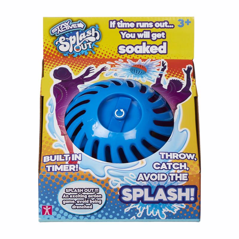 Have lots of fun playing with SPLASH OUT! An exciting action game that requires skill, coordination & nerves of steel! Fill your balloon with water (or air), place it inside and wind the timer. Then start your game of catch. Hurry! Pass on your SPLASH OUT…. as quickly as you can… before it pops the balloon and gives you a soaking surprise!!! Play outdoors or indoors! Refill and start again to continue the challenge. It’s a great way to stay active! There are 12 easily replaceable water balloons included with the SPLASH OUT. Suitable for ages 3 years and over.
