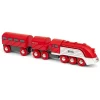 In Brio World there are no borders and no limitations – just endless possibilities. Be whoever you want to be, wherever you want in the BRIO World. Build, rebuild, invent and invite. The popular container ship carries cargo across the imagined waters. Load and offload by using the moveable crane to crank up the magnetic loads from the ship and place them on any train wagon from BRIO.