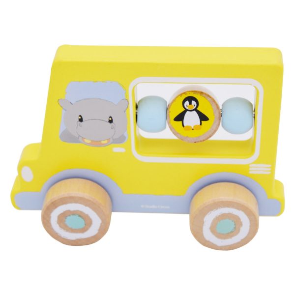 Beautiful push along car roller with hippo driver and penguin spinner. Smooth rolling wheels, gorgeously designed and packaged. Lots of fun can be had with this delightful toy and its spinning beads.