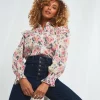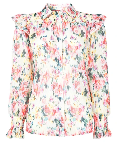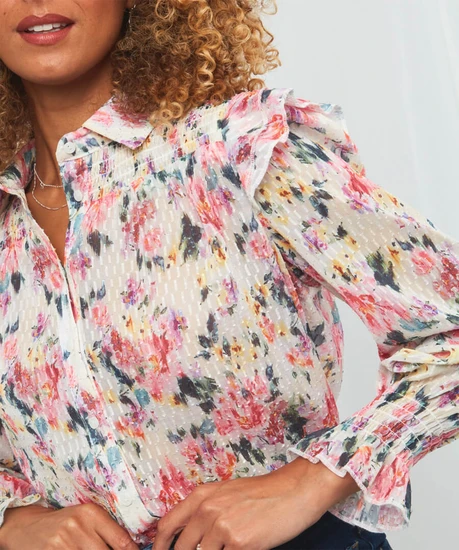You’ll love the romantic floral print on this feminine blouse. The blouse’s poetic ruffle cuffs and frilled shoulders offer a perfectly flattering fit, while the gorgeous floral design is sure to turn heads. Pair your sheer fabric shirt with your favourite flared jeans for a soft, vintage look.