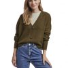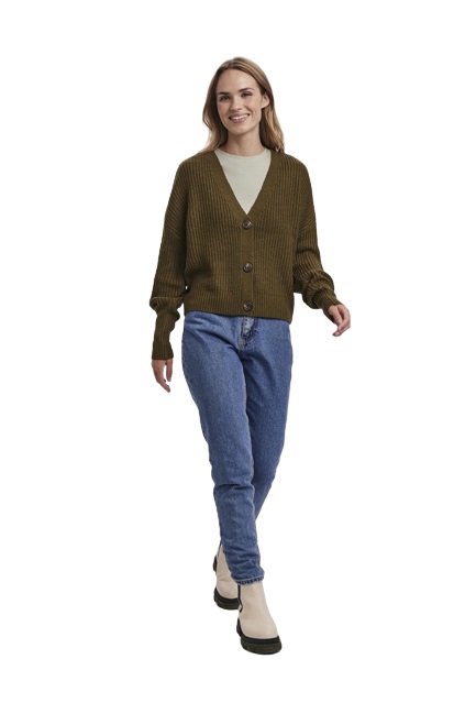 Knitted cardigan with volume sleeves, button closure in the front, an all-over rib structure, and a v-neck. Style this comfy cardigan with some casual mom jeans, a simple top underneath, and some chunky sneakers for a cool and casual look.