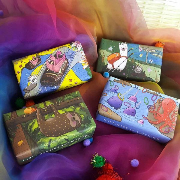 Our Wonderful Animals Flamingo soap is wrapped in delightfully illustrated packaging. Did you know flamingos love water parks too? These guys are having a wonderful time, imagine their ride photo will look like! Remember, make every moment fun and flamazing!