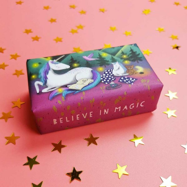 Our Wonderful Animals Unicorn soap is wrapped in delightful fairy tale packaging. Meet our unicorns snuggling down for the night. Mummy Unicorn reads baby Sparkle a bedtime story, as she settles with a hot cup of cocoa.